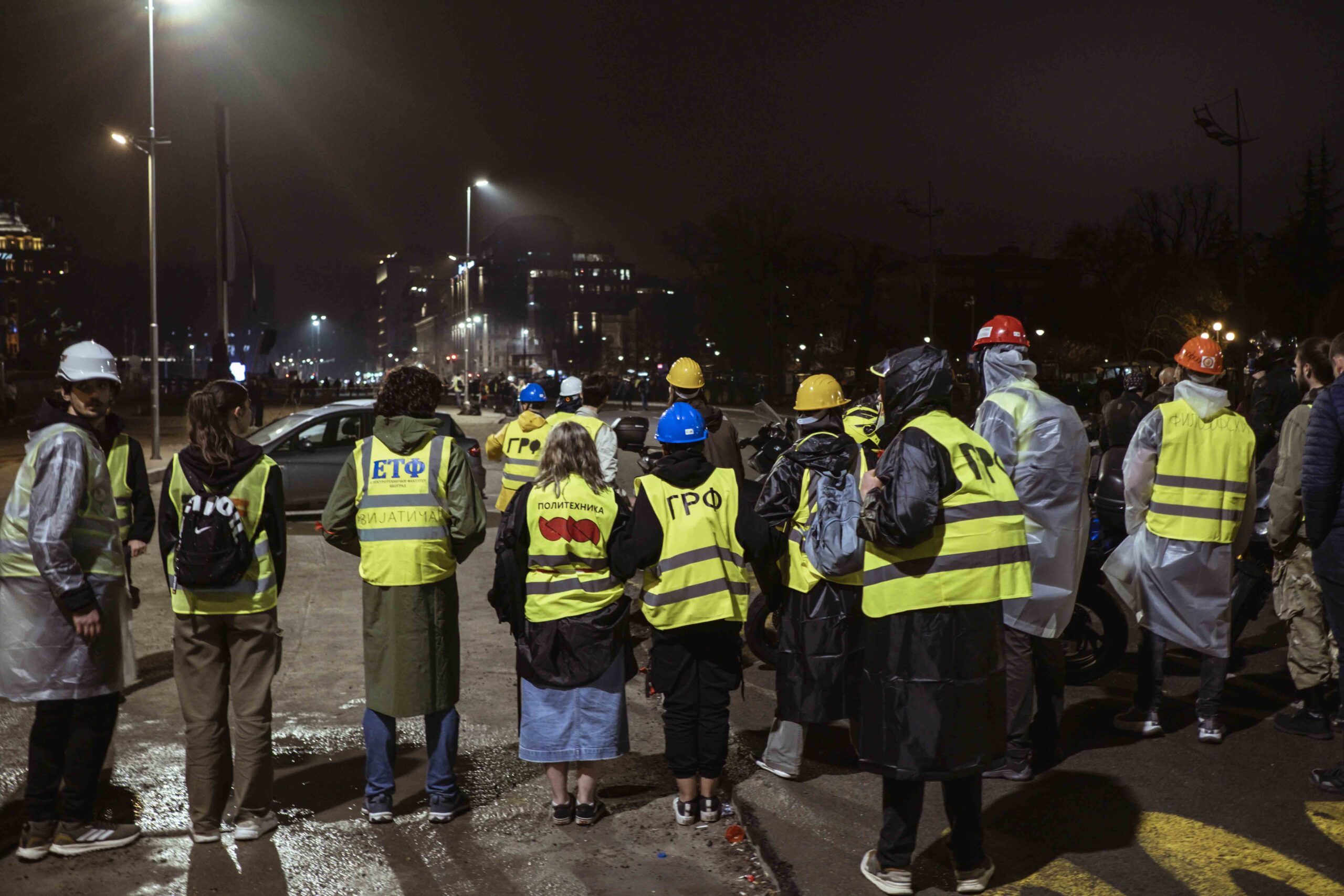 Amikor ismeretlenek a Pionír Park felől üvegekkel és kövekkel kezdték el dobálni a tüntetőket, akkor az egyetemisták jelezték, innentől kezdve már nem felelnek a történtekért, s a rendfenntartóik le is vették a megkülönböztető mellényüket.