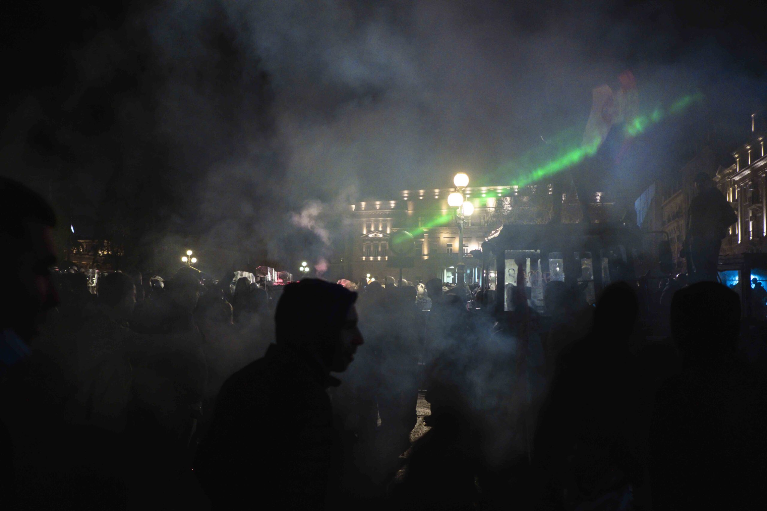 Amikor ismeretlenek a Pionír Park felől üvegekkel és kövekkel kezdték el dobálni a tüntetőket, akkor az egyetemisták jelezték, innentől kezdve már nem felelnek a történtekért, s a rendfenntartóik le is vették a megkülönböztető mellényüket.