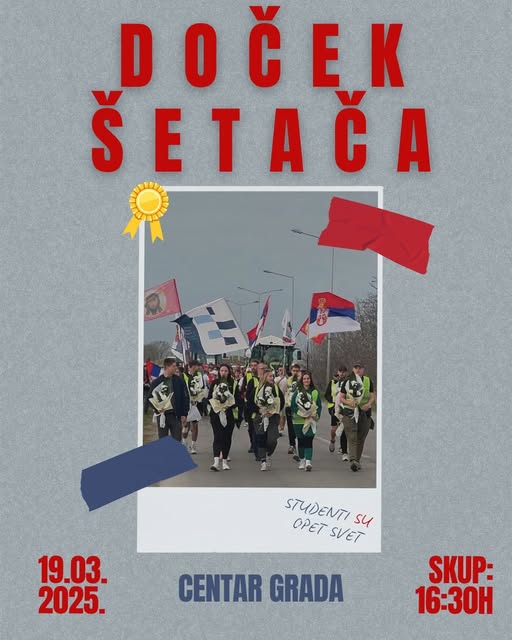 Szerdán délután fél ötkor Szabadka főterére várják azokat a polgárokat, akik szeretnék köszönteni azokat a szabadkai egyetemi hallgatókat, akik március 8-án gyalog indultak előbb Újvidékig, majd kollégáikkal együtt Belgrádig gyalogoltak a március 15-i tüntetésre.