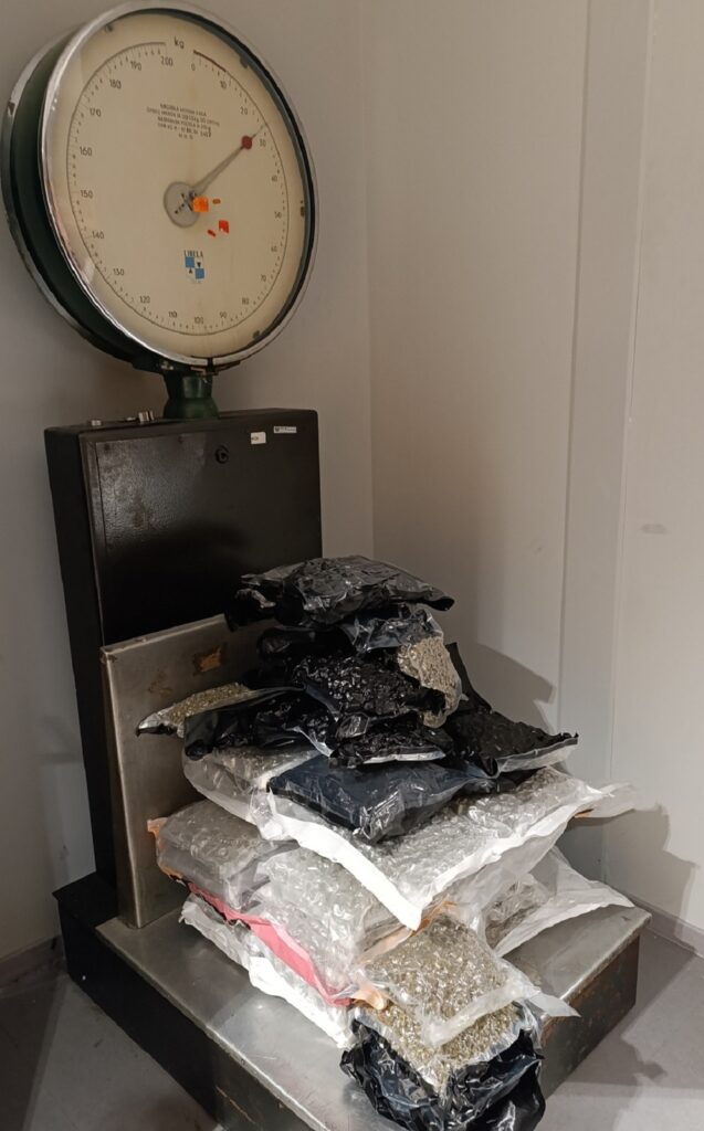 Az alapos vizsgálat során kiderült, hogy poggyászában 45 darab vákuumozott csomag található, amelyek összesen 26,5 kilogramm marihuánát tartalmaztak.