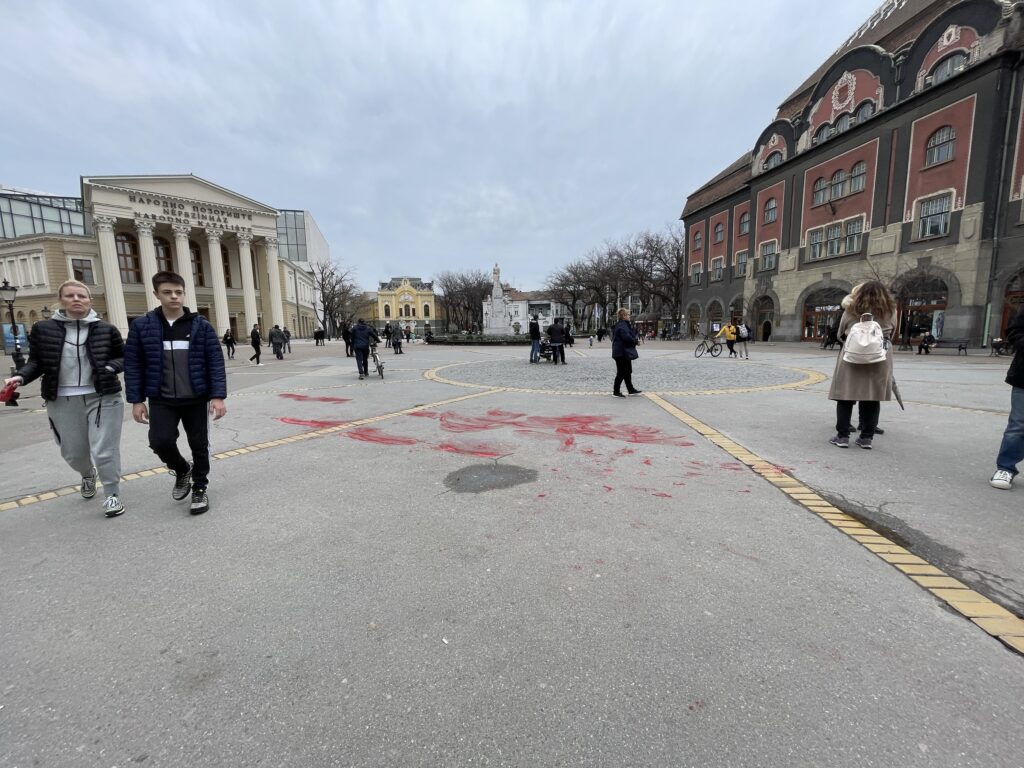 Már csak a járdán maradt vörös festék emlékeztet arra, hogy néhány perce még a haladók és a feldühödött szabadkai polgárok néztek egymással farkasszemet egy rendőrkordonon keresztül