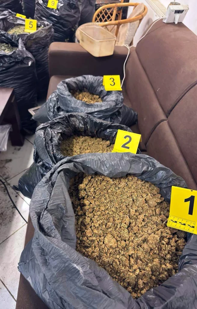 A rendőrség a gyanúsítottnál tartott házkutatás során mintegy 300 tő kannabisz növényt talált és foglalt le, amelyek már érett vegetációs fázisban voltak, továbbá 500 olyan növényt, amelyek mintegy 25 centiméter magasak voltak. A növények összesen 171,9 kilogrammot nyomtak. Emellett nejlonzsákokba és vákuumfóliába csomagolt szárított növényi anyagot is találtak, ami a rendőrök gyanúja szerint marihuána, ennek súlya 131,7 kilogramm volt.