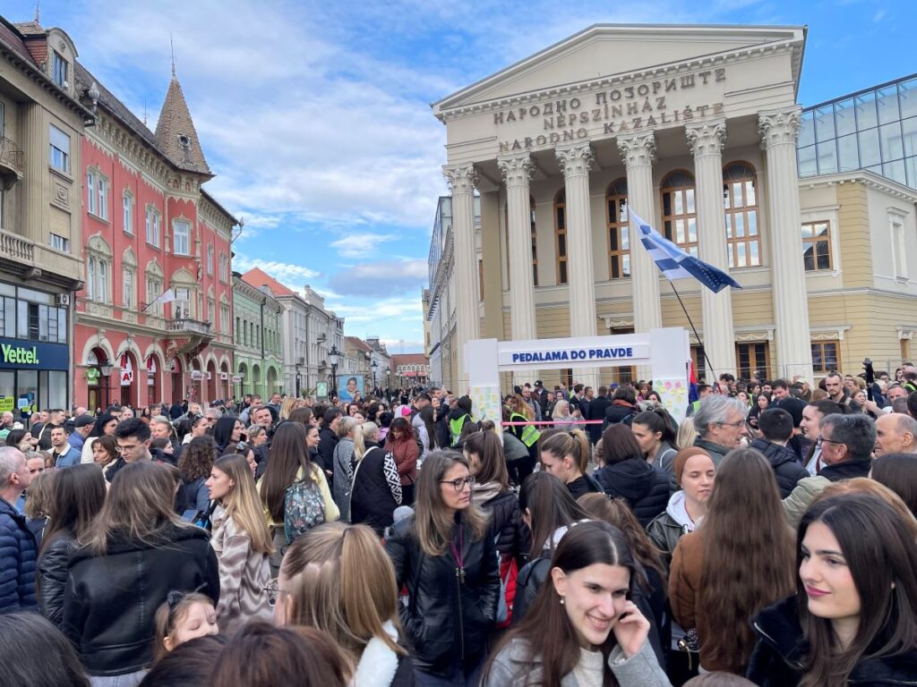 Éppen kisütött a nap, amikor megérkeztek Szabadka központjába azok az egyetemisták és kísérőik, akik reggel nyolc órakor indultak Újvidékről, hogy mintegy tíz nap alatt megtegyenek ezerháromszáz kilométert és eljussanak Strasbourgig, ott pedig felhívják a nemzetközi közvélemény figyelmét a Szerbiában zajló eseményekre.