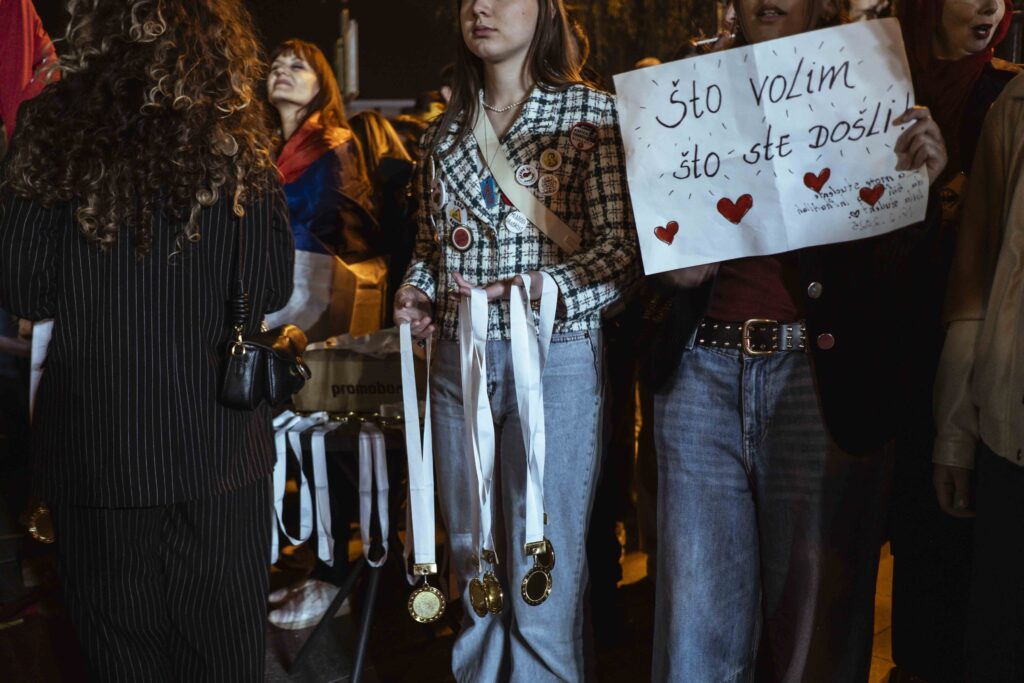 Megérkeztek a Novi Pazarba gyalog, kerékpárral Jagodinából, Újvidékről, Belgrádból és Szerbia más részeiről induló egyetemisták, ahol szombaton nagy egyetemista tüntetés lesz. Nem tudták visszatartani a könnyeiket az örömtől, sem azok, akik megérkeztek, sem azok, akik várták őket. A péntek este Novi Pazarban tele volt érzelmekkel.