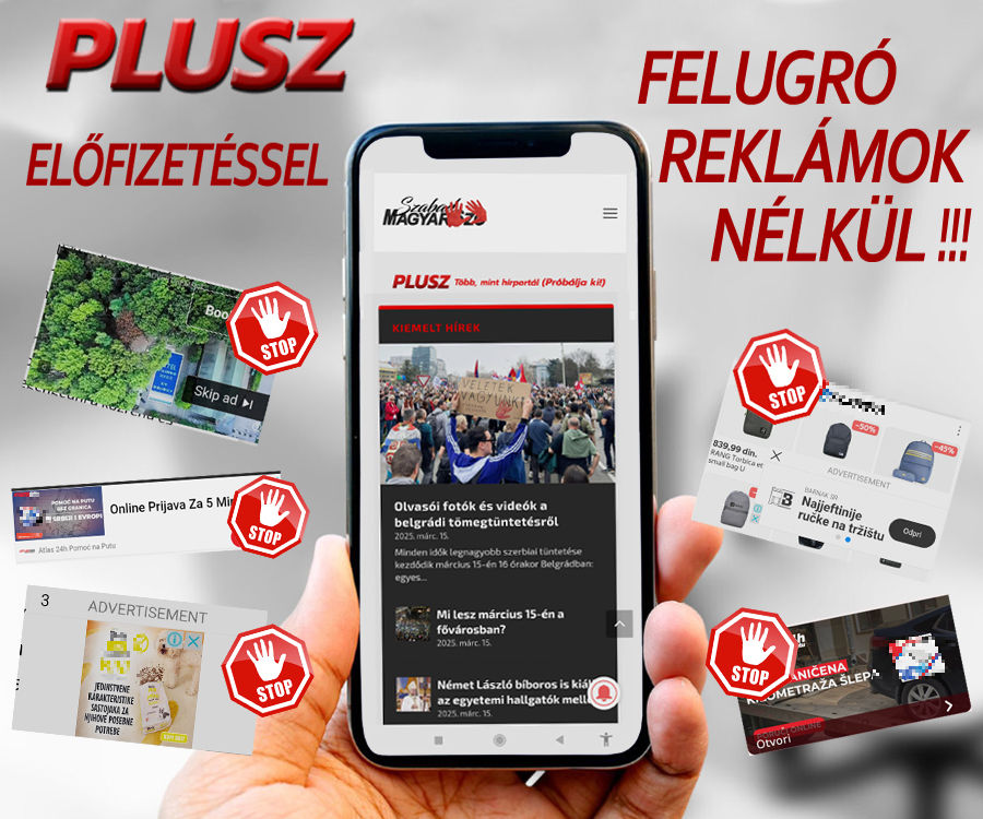 Segítsünk egymáson! Napi húsz dinárért (0,17 euró) legyél a Szabad Magyar Szó előfizetője, így megszabadulsz a felugró reklámoktól, elolvashatod a Plusz rovatban megjelenő cikkeket, és nem mellékesen ezzel is hozzájárulsz, hogy továbbra is a Szabad Magyar Szó legyen a legolvasottabb vajdasági magyar honlap és még több helyi témáról számoljunk be!