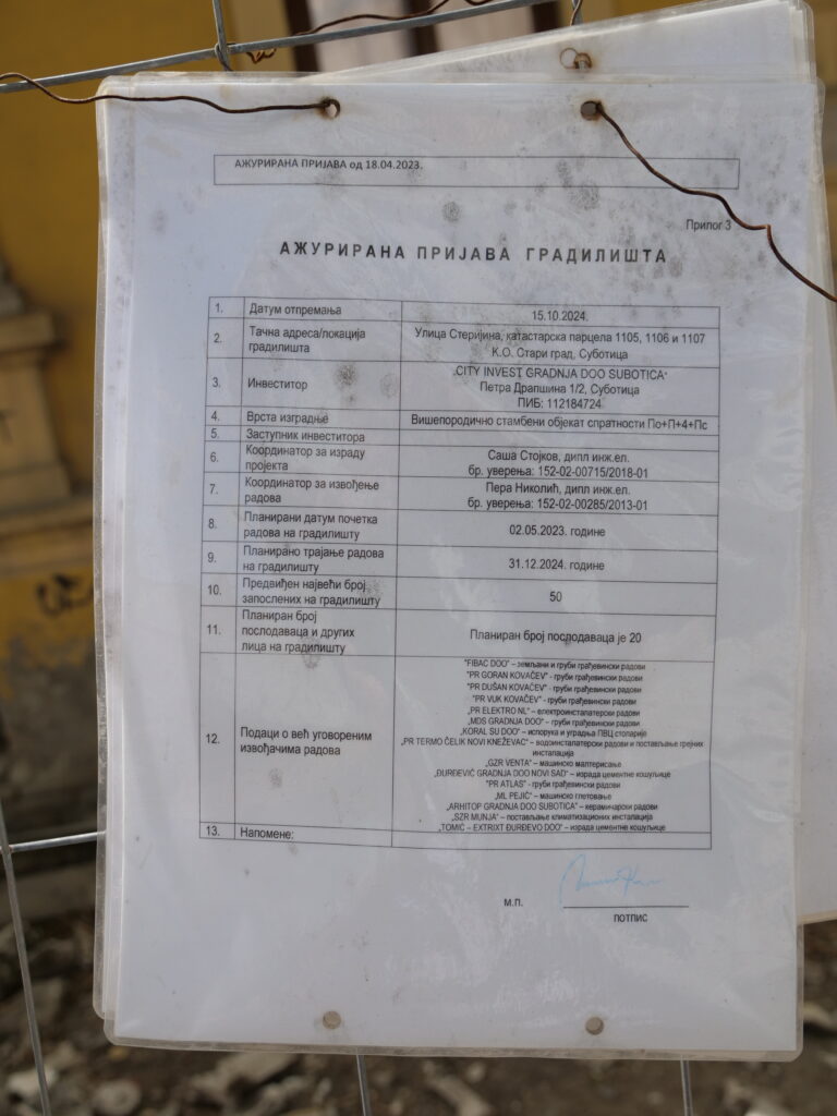 A lebontott épület tőszomszédságában van az Evetović Poliklinika, itt lakik Nora Evetović képzőművész is, aki azt mondja, az egész családja, de a szomszédok is nagyon fel vannak háborodva a bontás miatt.