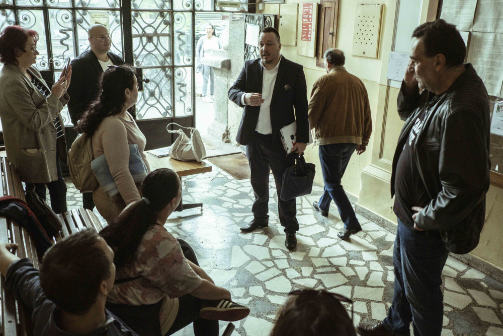 Goran Jovanović (Szerbia Népi Mozgalma) nem akart addig leülni, amíg a polgárokat nem engedik be az ülésre (Fotó: Mina Delić)