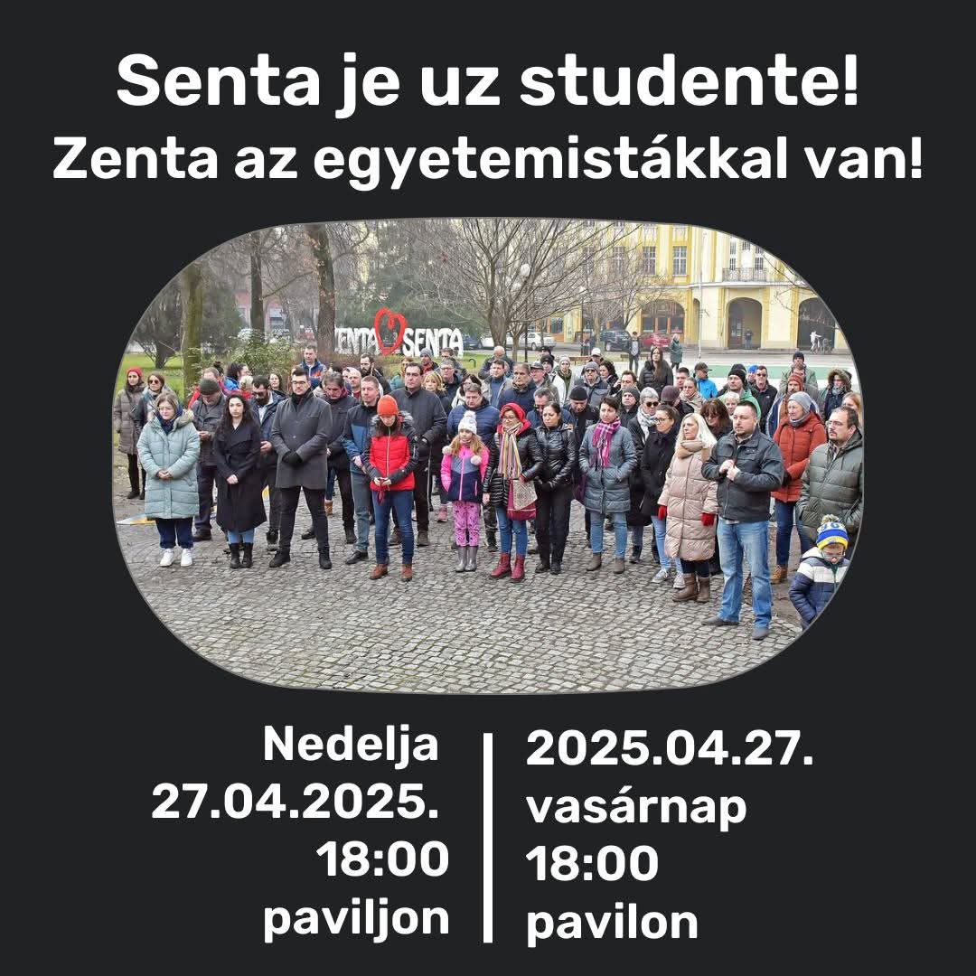 Az elmúlt több hónapban minden szombaton 11:40-kor gyülekeztek a zentai és környékbeli polgárok a központi parkban levő pavilonnál, ahol 15, később pedig 16 perc csenddel adóztak a november elsején, az újvidéki pályaudvar előtetőjének leomlása során elhunyt tizenhat személy emléke előtt, utána pedig egy felszólaló beszéde után az egyetemistákat támogató tiltakozók egy rövid sétát tettek a város központjában.