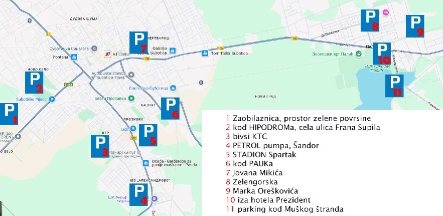 Azokat, akik más városokból autókkal érkeznek Szabadkára, a szervezők arra kérik, hogy járműveiket a lenti térképen megjelölt helyeken, a város központján kívül parkolják le, hogy ezzel is biztonságosabb legyen a rendezvény.