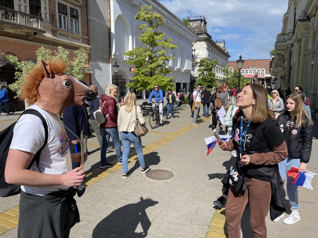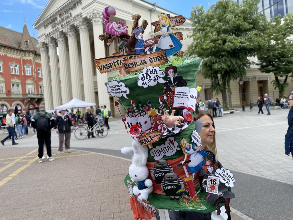 Szabadkán egyébként a tüntetés 12 órán át tart. Kiállítások, gyermekprogram, dj, szégyenfal, és baráti beszélgetések. Ez jellemzi a tereket, legalábbis a koradélutáni sétánk erről tanúskodik. Még mi sem jártunk be minden helyszínt, az esti órákig sort kerítünk erre is.