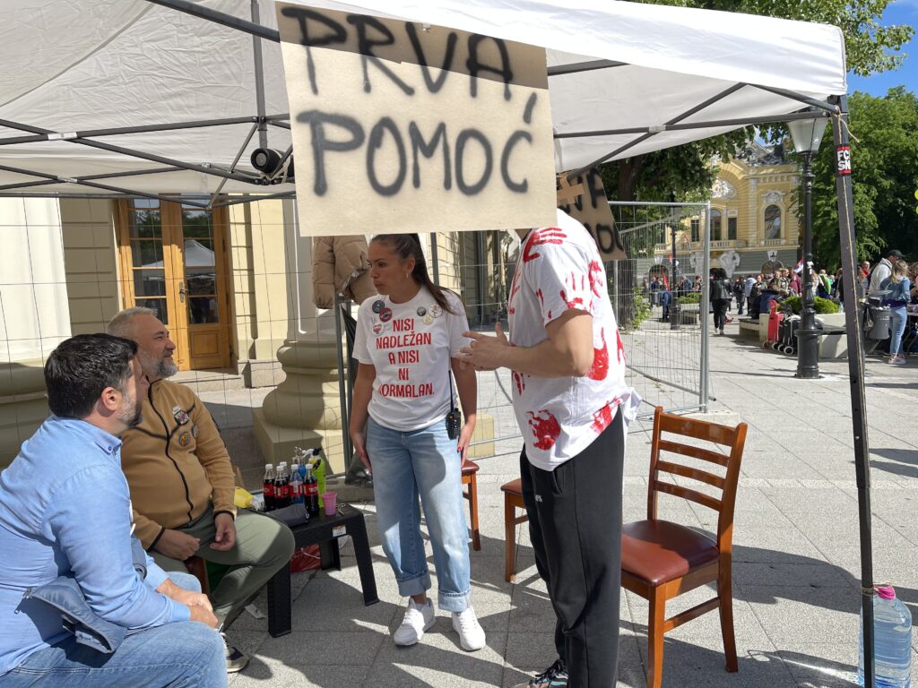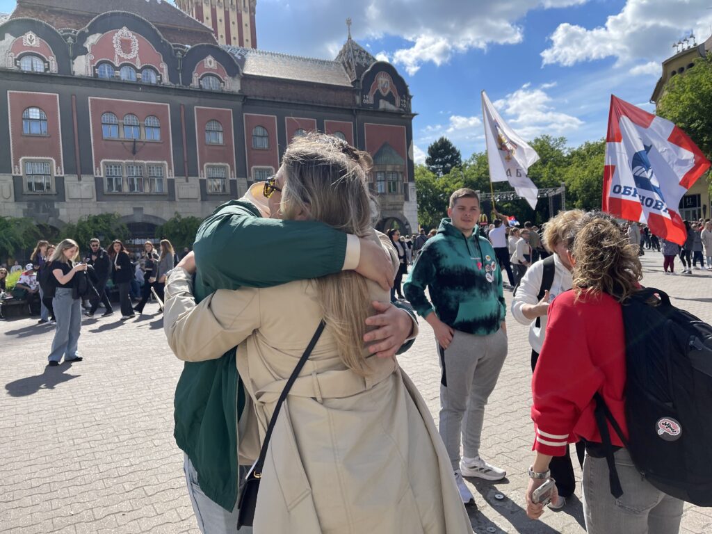 Délután két óra óta nyüzsög a város, Szabadka nagy országos tüntetésre készül. Először csak a helyiek merészkedtek ki az utcára, majd szép lassan érkeztek az ország belsejéből a tüntetők. A legtöbben azért, mondják, mert, ha az egyetemisták hívnak, akkor jönni kell. Szabadka egyébként is egy szép város, érdemes eljönni, még ha nincs is rá különösebb okunk, de most van, mondja az egyik tüntető. Azért vannak itt, mert nem teljesültek a követelések, és azért, mert fél éve ez a kormány, és az új összetételű sem hajlandó válaszokat adni. Helyette aktivistákat zárnak börtönbe, tartanak fogva már két hónapja.