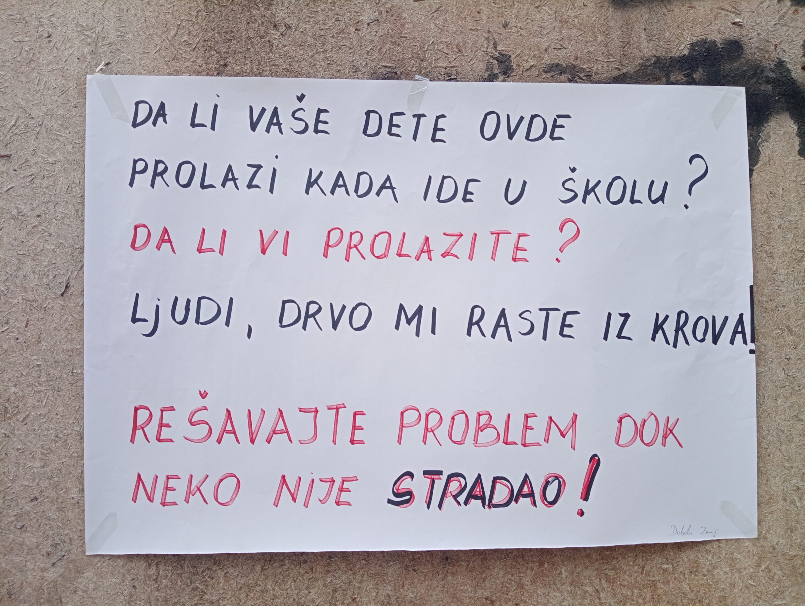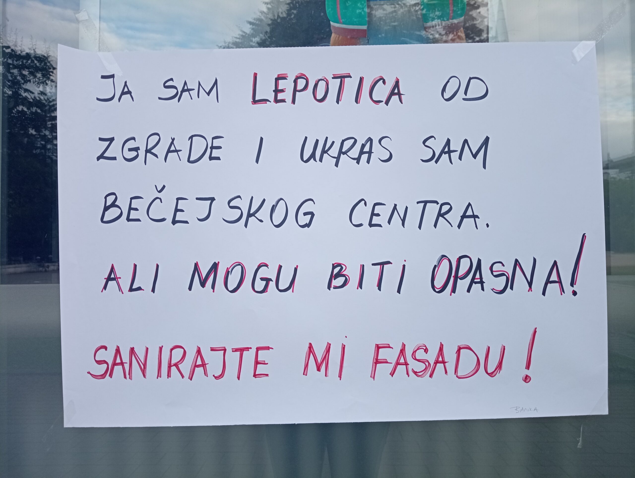 Az utóbbi napokban több óbecsei épületről is leesett a vakolat egy része, egy héttel ezelőtt (május 22-én) pedig óra alatt leszakadt a vakolat egy darabja a mennyezetről az Óbecsei Gimnázium egyik tantermében, és négy diák könnyebb sérüléseket szenvedett – ez volt az apropója annak a szerda esti tüntetésnek, amit a Csak helyben Polgári Csoport és az Óbecsei Szabad Polgárok az Egyetemisták Mellett szervezett a községháza elé.