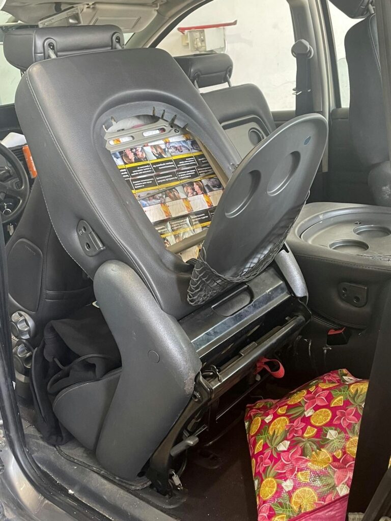 Egy személyautó gyári üregeinek, a plafonkárpit feletti részének, az ülés támláinak, a csomagtartónak, illetve az utas poggyászának alapos átvizsgálása során a 529 doboz Carelia Slim, Marlboro Touch Blue, Davidoff, OME Slim, Davidoff Slim Gold és Parliament Aqua Blue márkájú cigarettát, 20 csomag Old Holborn márkájú dohányt és 3.000 darab, cigarettához való füstszűrőt találtak.