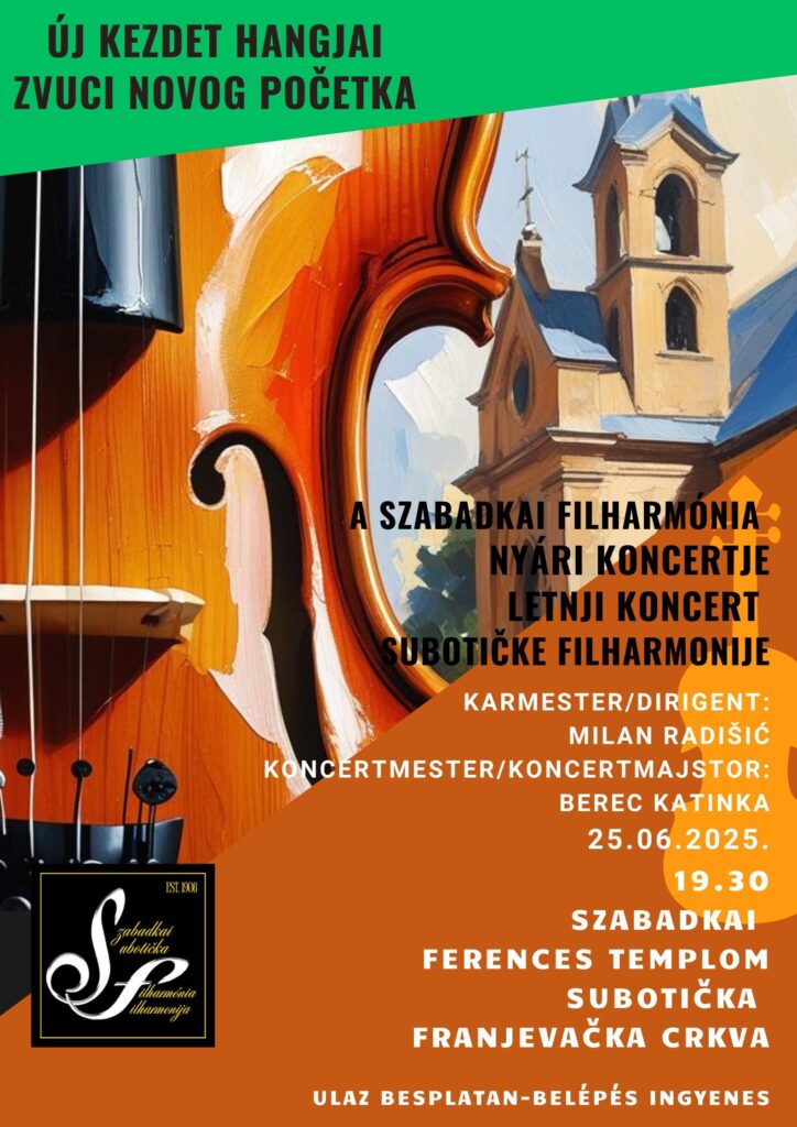 Új kezdet hangjai elnevezéssel tart hangversenyt a Szabadkai Filharmónia szerdán, június 25-én 19:30-kor a szabadkai Ferences templom teraszán.