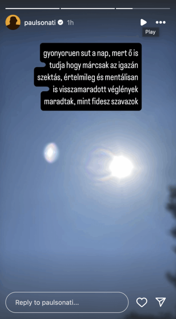 „Gyönyörűen süt a Nap, mert ő is tudja, hogy már csak az igazán szektás, értelmileg és mentálisan is visszamaradott véglények maradtak, mint Fidesz-szavazók”