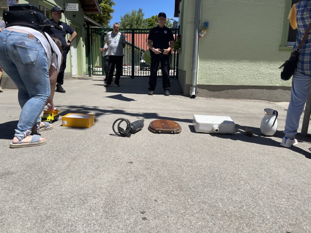 Az épület előtt már délben hatalmas rendőri erőkkel vonultak fel a Belügyminisztérium képviselői, több autó, több mint egy tucat rendőr, furgon állt a helyszínen. A rend őrei fél egykor, a performansz kezdetén odaálltak az épület elé, a napra, a tiltakozók pedig az árnyékból üzentek a vállalatnak.