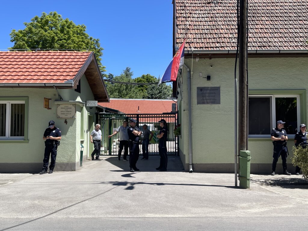 Rendőrök a vállalat igazgatósági épülete előtt (Fotó: SZMSZ)