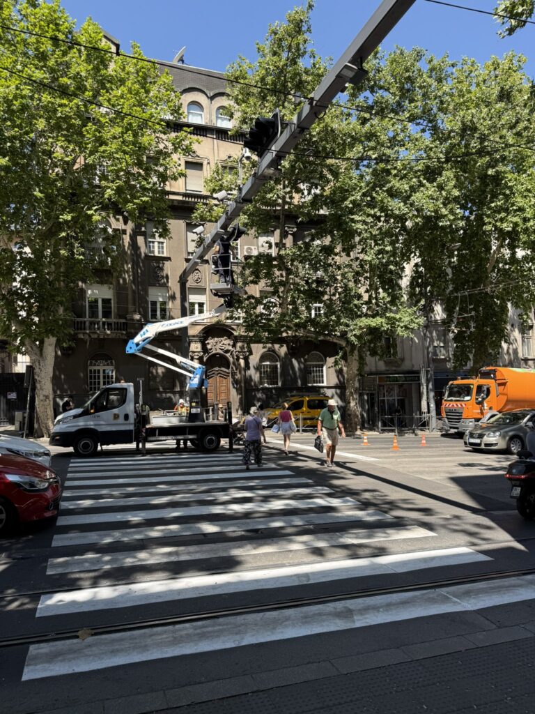 A közösségi médiában olyan videók és fotók jelentek meg, amelyeken az látható, ahogy a Beograd put vállalat gépei eltávolítják a gyalogátkelőt a Slavija téren. Ezen a helyen a polgárok napok óta forgalomlassító akciókat szerveznek, amelynek során folyamatosan átkelnek az úttesten.