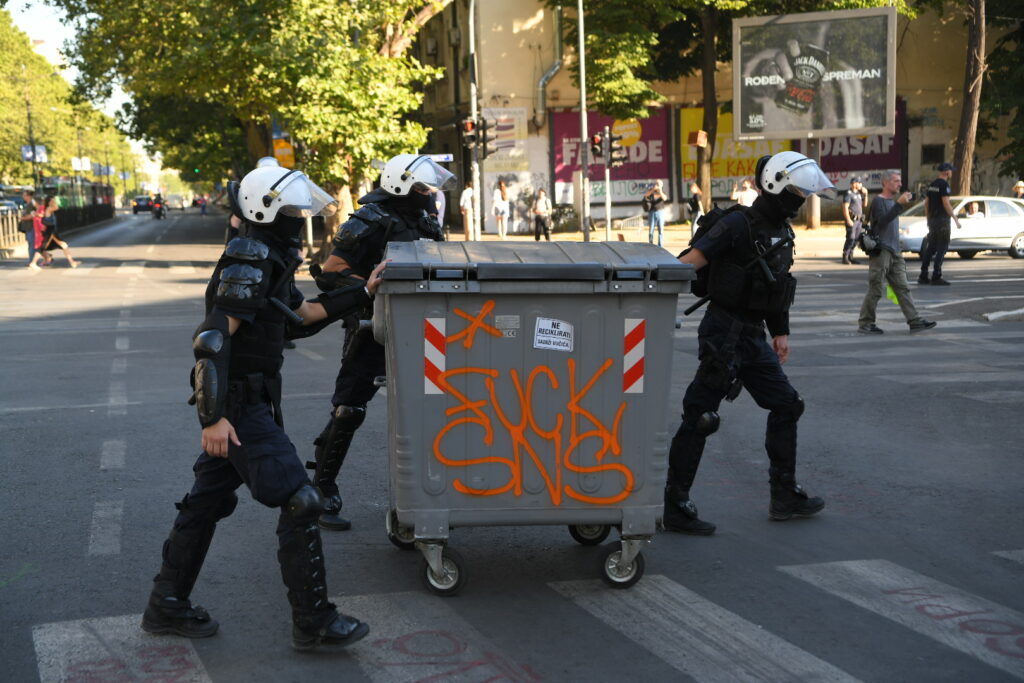 A főváros több pontján lezárták a kereszteződéseket a polgárok, nem járnak a buszok, villamosok. A rendőrség különleges egységei viszont több ponton eltávolították a blokádokat, a szemeteskukákat eltolták az utakról, a polgárokat pedig leszorították az útról. Ennek ellenére a polgárok kitartanak és azt kiabálják: Nem adjuk az egyetemistákat!