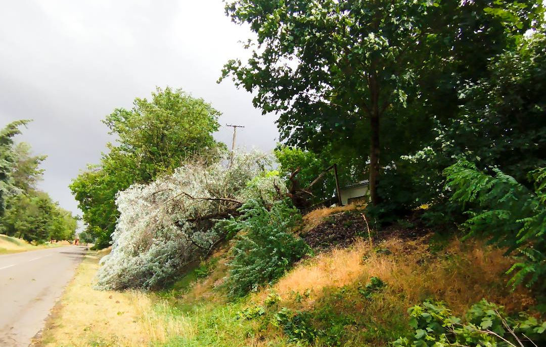 A hétfő kora délután érkező vihar Bácskossuthalván is komoly gondot okozott. A vihar a településre erős széllel és nagy szemű jégeső kíséretében érkezett meg. A szél több helyen is tövestül döntötte ki a fákat, a cserepeket sodorta le a háztetőről, s emellett villanykarók is kidőltek, és a villanyvezetékek szakadtak le. A tűzoltóság azonnal intézkedett, s igyekeztek eltávolítani a fákat az úttestről. A vihar elvonultán egy magas fenyőfa tövestül dőlt rá egy éppen arra közlekedő mikrobuszra, amelynek az elejére zuhant, s emiatt a topolyai rendőröknek kellett helyszínelni, s erre a másfél órára teljes útzárat rendeltek el.