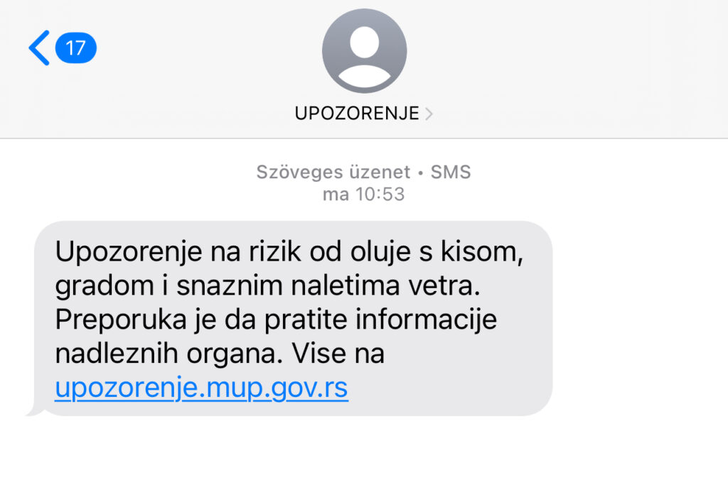 „A mai napon Vajdaság, Nyugat- és Közép-Szerbia területén várható záporokat és zivatarokat időnként jégeső és viharos vagy orkánerejű széllökések kísérhetik. A konkrét helyszínekre 1–2 órával előre kiadott sürgős riasztások lesznek érvényben” – áll a közleményben.