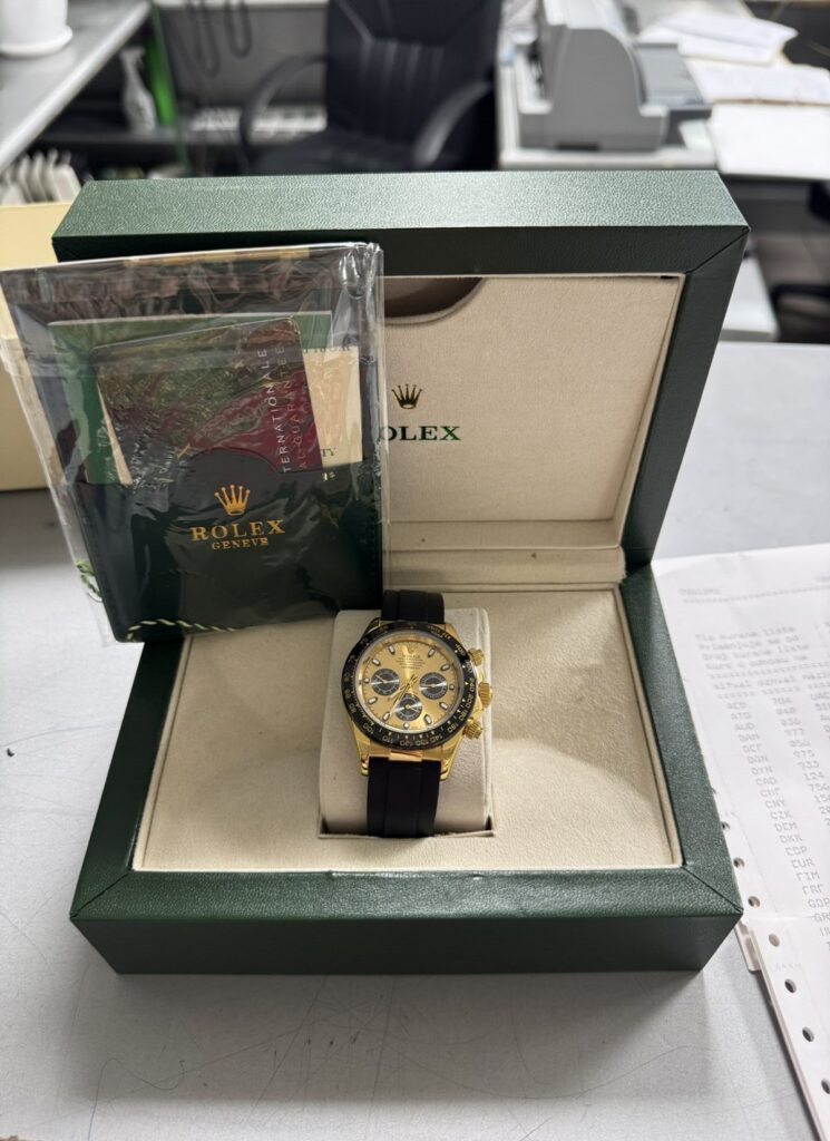 Egy másik gépkocsi átvizsgálása során az anyósülés alatt egy 40 000 euró értékű Rolex karórát és 410 gramm, körülbelül 38 000 euróra becsült arany ékszert találtak. A be nem jelentett árukat szállító személyek ügyét a vámtisztviselők átadták az illetékes bíróságnak.