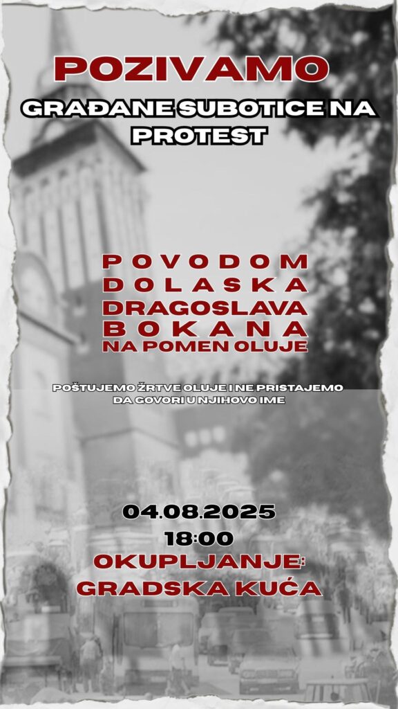 Szabadkai polgárok egy csoportja nyílt levelet írt a nyilvánosságnak, az intézményeknek és a városvezetésnek annak az általuk szégyenteljesnek ítélt döntésnek kapcsán, hogy a Vihar hadművelet évfordulója – a szerb nemzet egyik legtragikusabb napja – alkalmából Dragoslav Bokan ideológust, háborús uszítót, a politikai szélsőségek népszerűsítőjét hívták meg főszónoknak.