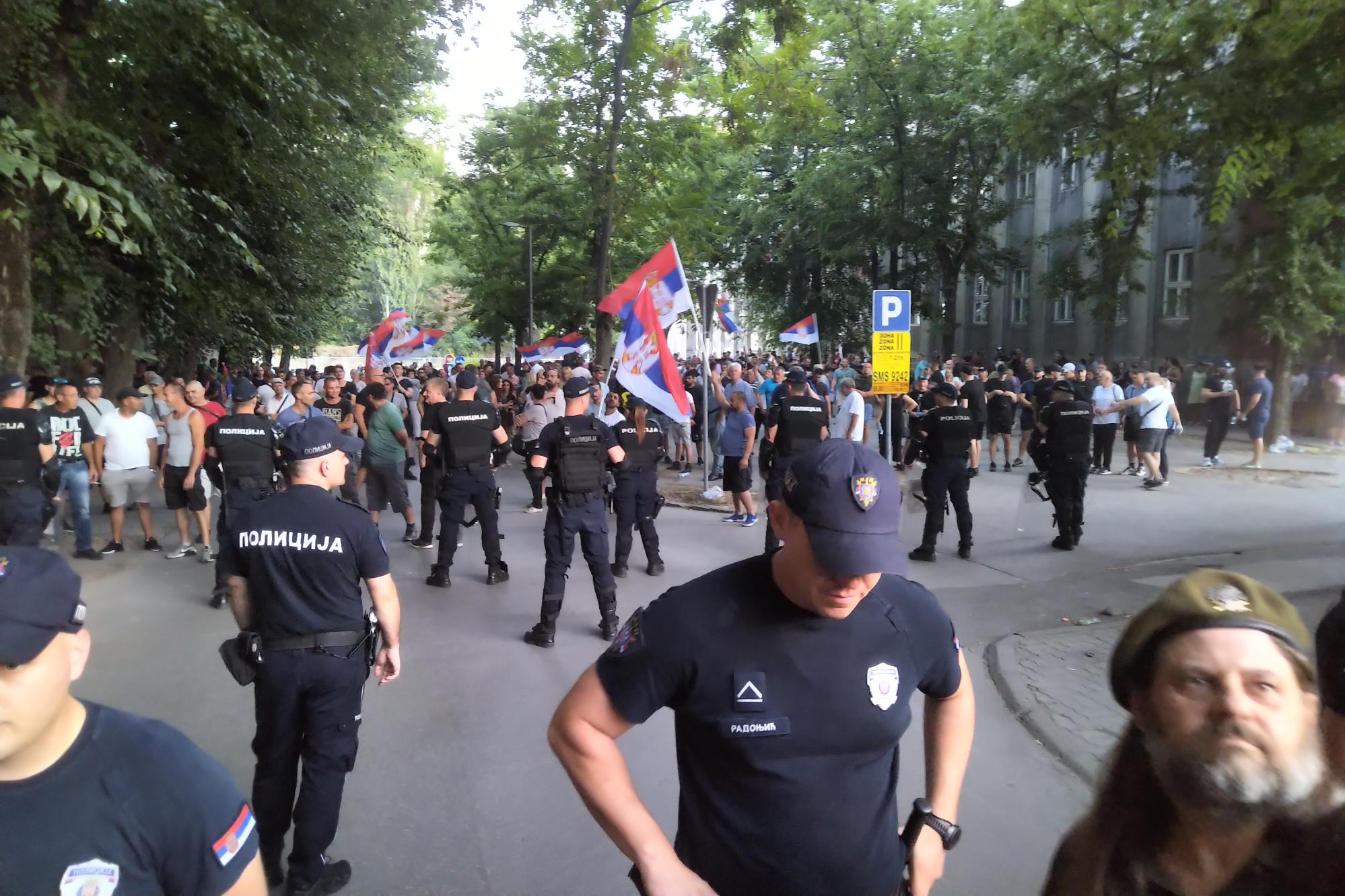A helyzet igencsak feszült, az egyik tábor élteti Vučićot, és a legnagyobb szerbnek tartja, míg a másik folyamatosan szidja a köztársasági elnököt. A pajzzsal felszerelt rendőrök jelenleg a Szerb Haladó Párt szimpatizánsai előtt állnak.