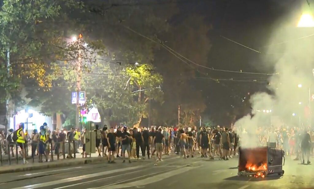 A Nemanja utcában, amerre a tüntetők menekültek, köveket is dobáltak. A Slavija téren könnygázt vetettek be, a rendőrség pedig a környező utcákba szorította vissza az embereket.