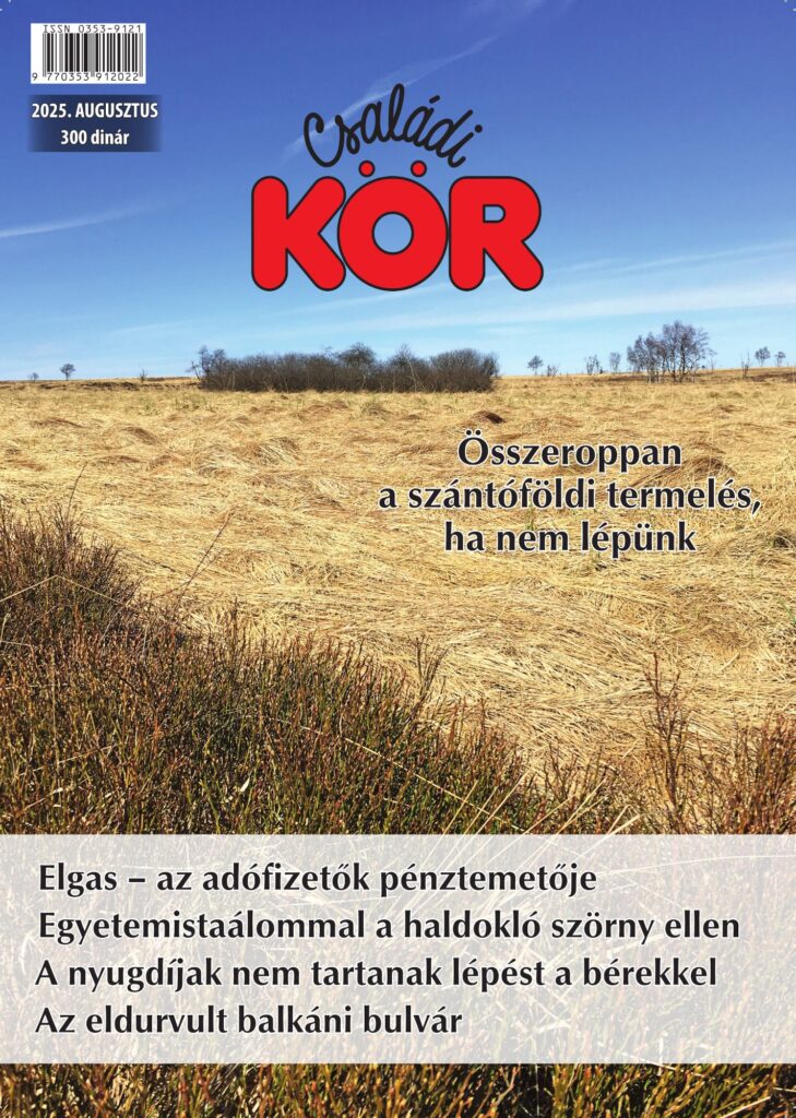 A Köztársasági Statisztikai Intézet május végi adatai szerint Szerbiában az idén 961 ezer hektáron vetettek kukoricát, 607 ezer hektáron búzát, 242 ezer hektáron napraforgót, 206 ezer hektáron pedig szóját. Bár a kukorica melegkedvelő növény, és a napraforgó is jól viseli a hőséget, a mostani forróság már ezeknek a kultúráknak sem kedvez. – Fehér Rózsa riportja a Családi Kör augusztusi számában olvasható.
