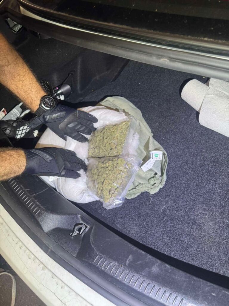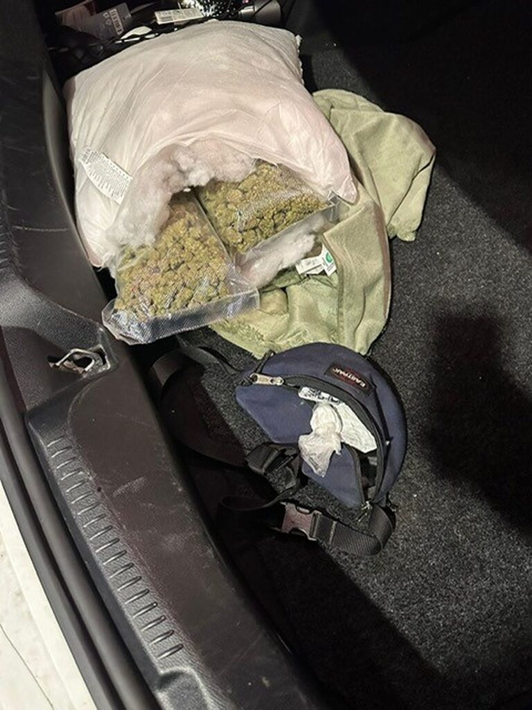 A jármű alapos átvizsgálása során, amelyhez a szolgálati kutya segítségét is igénybe vették, először a sofőrnél találtak kisebb mennyiségű kokaint. Ezt követően a hátsó ülésen lévő párnában 506,8 gramm marihuánát fedeztek fel.