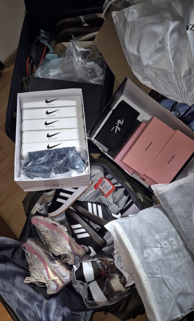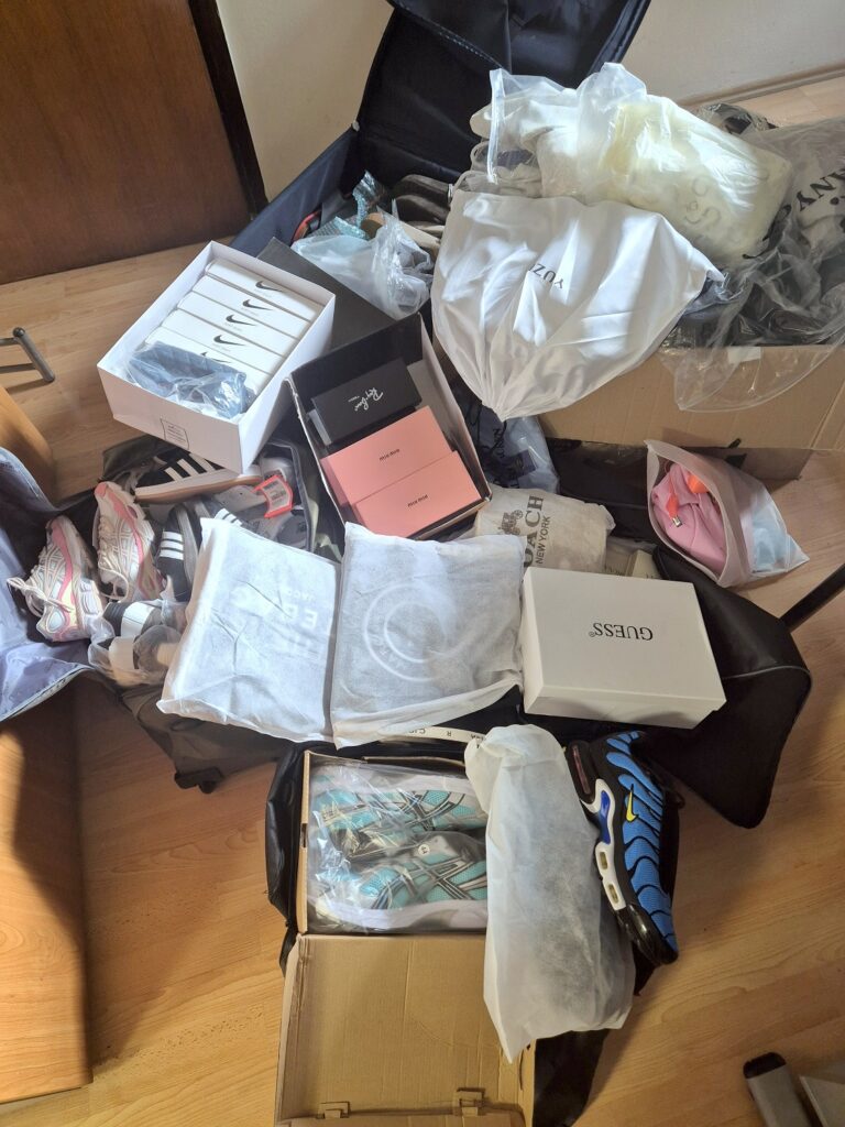 Az ellenőrzés során megállapították, hogy az állítólag üres teherautó utánfutójában több mint 200 új férfi, női és gyerekruházati cikk, cipő, napszemüveg és női táska található, melyeken ismert márkanevek szerepelnek.