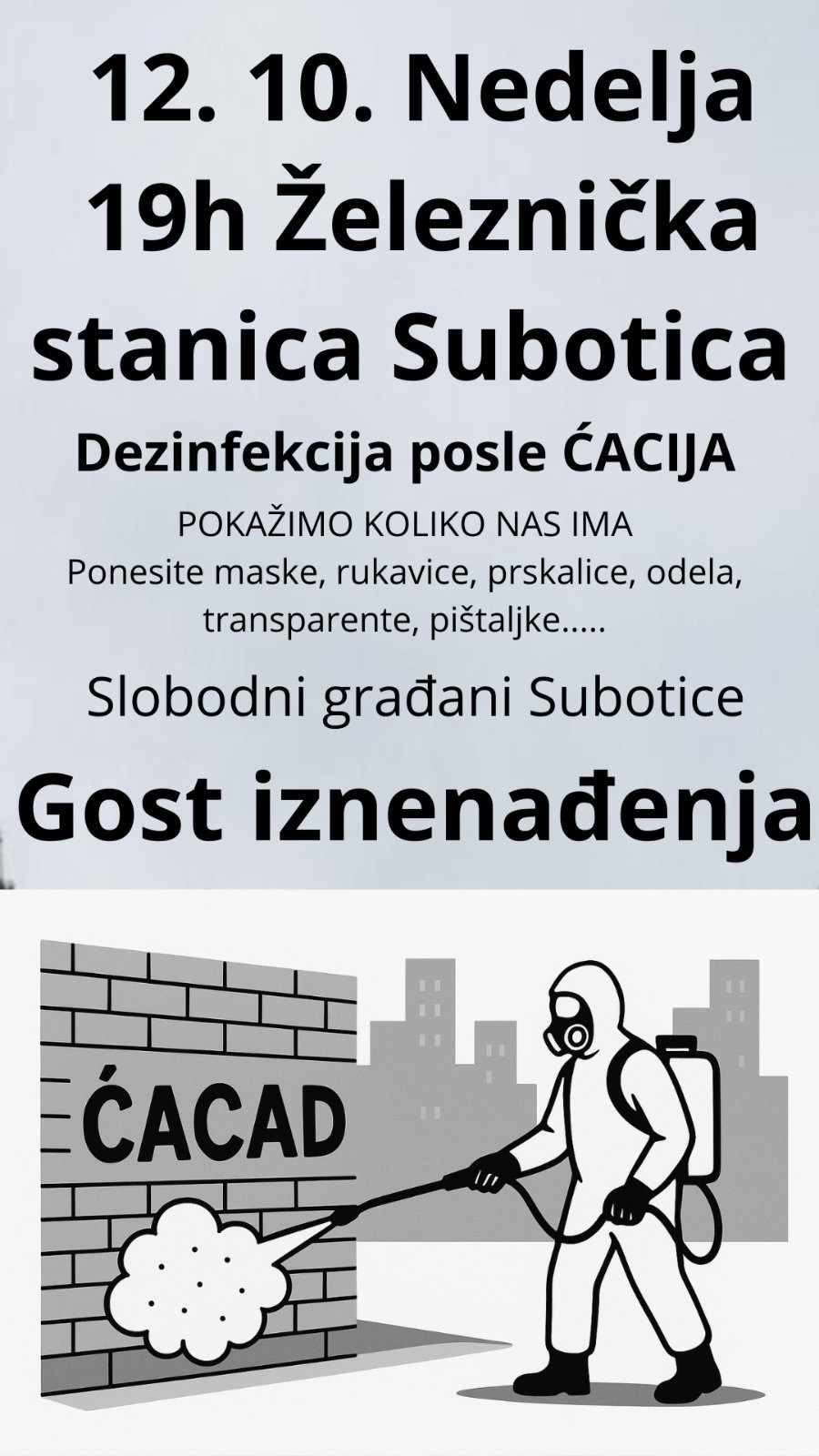 Vasárnap 19 órakor ismét fertőtlenítés lesz Szabadkán, ezúttal is a vasútállomáson kerül sor az akcióra Szabadka szabad polgárainak a szervezésében.
