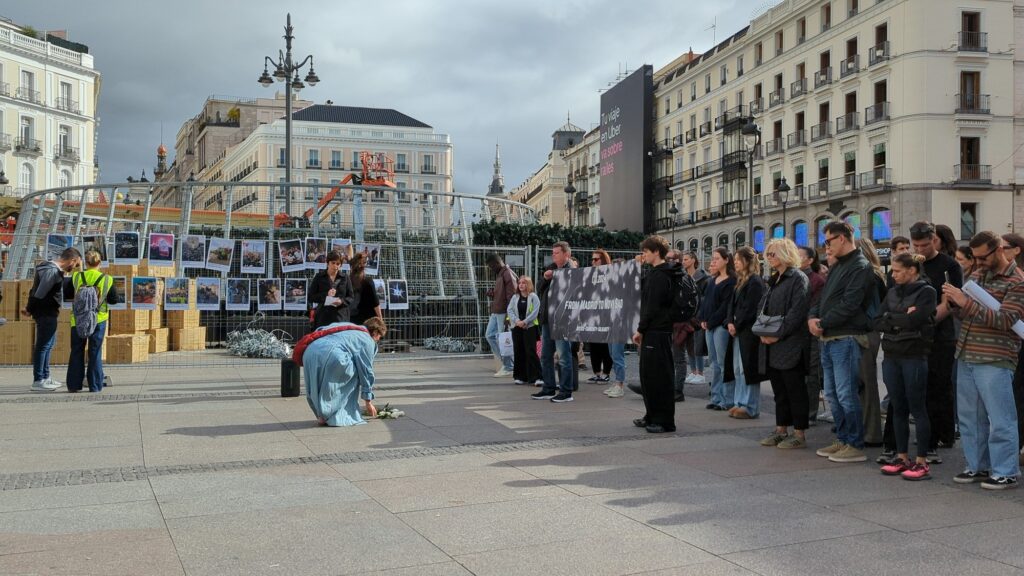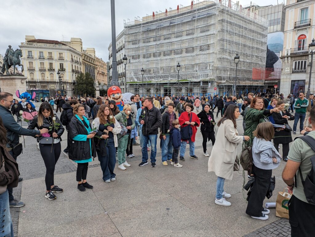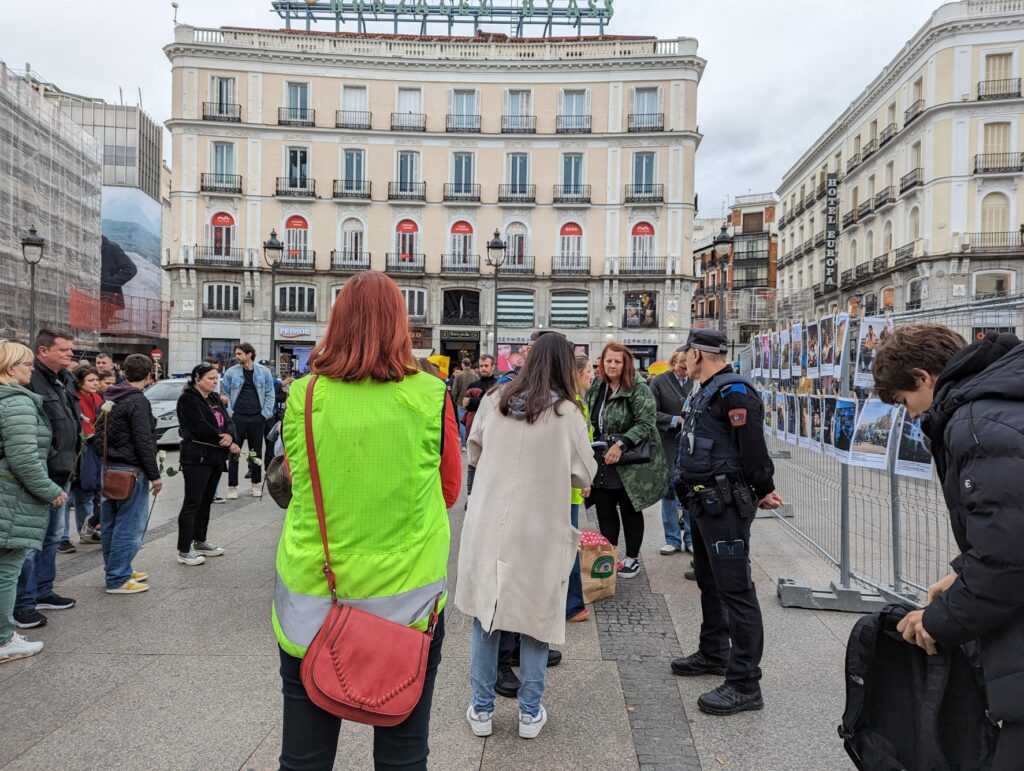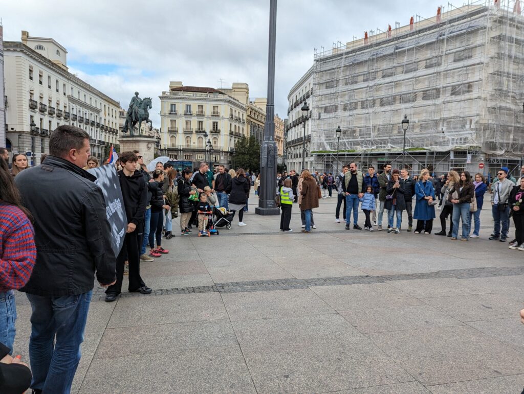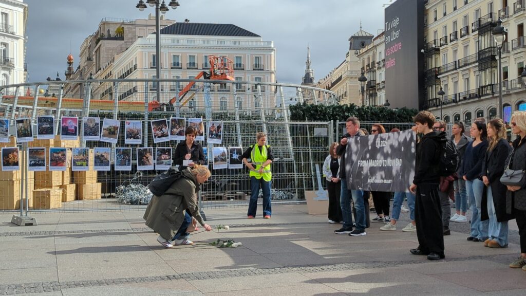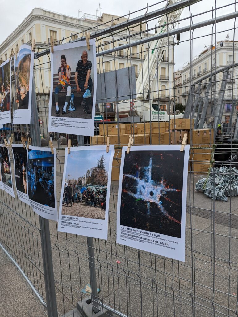 A madridi Puerta del Sol terén mintegy 150 ember gyűlt össze, köztük szerbek, spanyolok, amerikaiak és németek. Az esemény 16 perces néma csenddel kezdődött – minden elveszített életért. Ezután felolvasták a 16 áldozat nevét, majd a résztvevők egy-egy fehér rózsát helyeztek el a tér közepén.