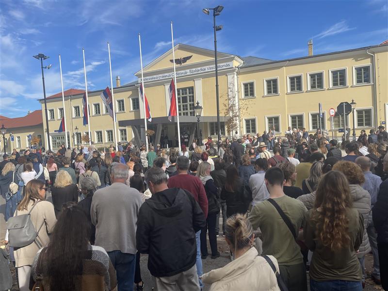 Néma csendben, gyertyát és mécseseket gyújtva, valamint virágok elhelyezésével emlékeztek meg a szabadkaiak a pontosan egy évvel ezelőtt történt újvidéki tragédiáról, amikor mindenszentek ünnepén leomlott a nem sokkal korábban felújított vasútállomás előtetője, és tizenhat ember halálát okozta.