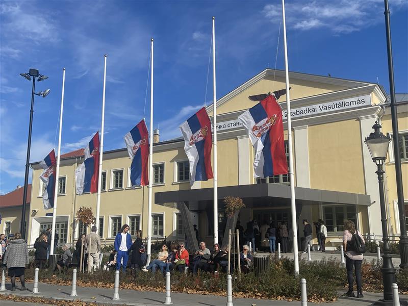 Néma csendben, gyertyát és mécseseket gyújtva, valamint virágok elhelyezésével emlékeztek meg a szabadkaiak a pontosan egy évvel ezelőtt történt újvidéki tragédiáról, amikor mindenszentek ünnepén leomlott a nem sokkal korábban felújított vasútállomás előtetője, és tizenhat ember halálát okozta.