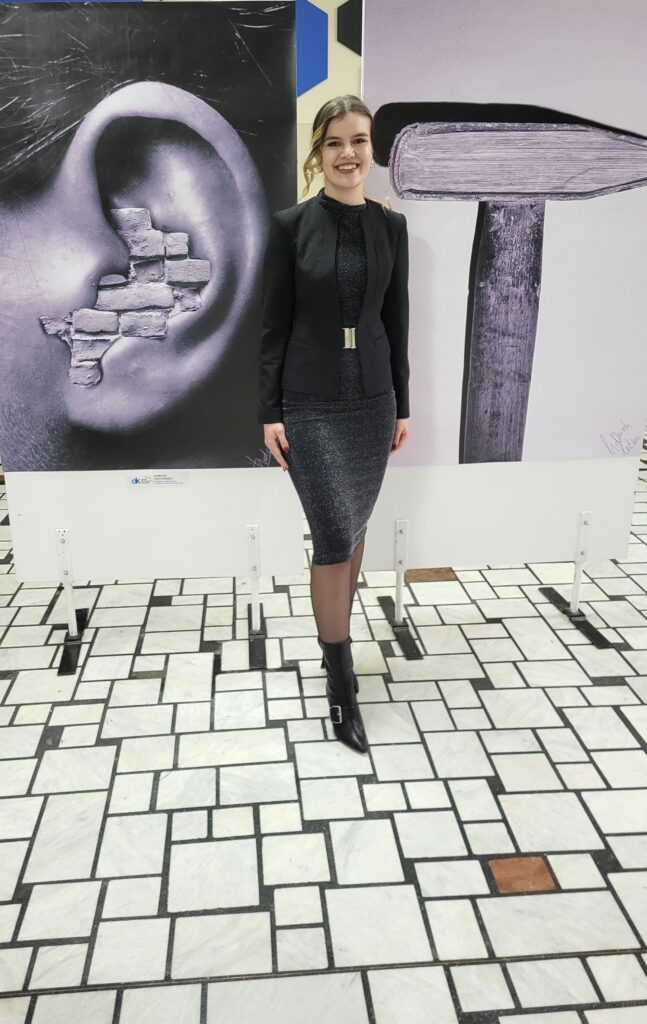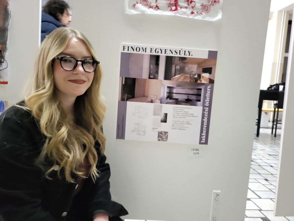Lázár Lea (Újvidék): Finom egyensúly (plakát, vetítés). „Munkám középpontjában egy lakótér átalakítása áll, melynek fő célja az egyszerűség és az elegancia elveinek érvényesítése. A tér eredetileg sem funkcionálisan, sem vizuálisan nem adott inspiráló alapot, ezért a tervezési folyamat során arra törekedtem, hogy letisztult, időtálló és funkcionális életteret hozzak létre. A berendezés során visszafogott anyaghasználat, arányérzék és világos tér rendje segíti a koncepció megvalósítását.