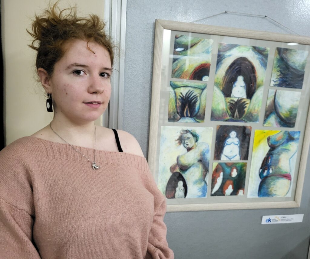 Idézet a rezüméből: „Kisebb formátumban, olajpasztellekkel készült alkotásaim introspektív önarcképek, amelyek az alkotás, a termékenység és a test, mint a személyes és művészi kifejezés helyszínének témáit vizsgálják.