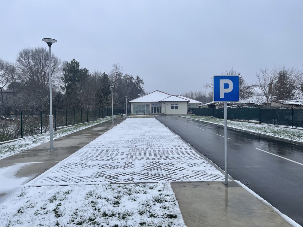 A palicsi rendelő épülete és a hozzá tartozó parkoló 2026 januárjában (Fotó: SZMSZ)
