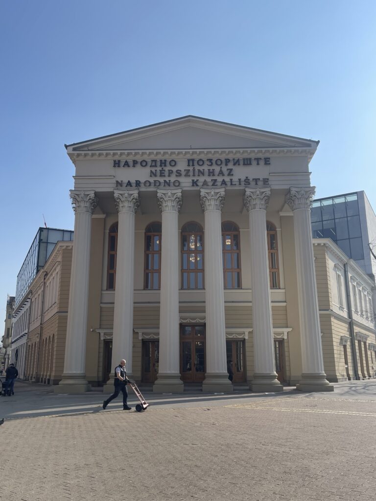 Tizenhét évnyi várakozás után ebben a pillanatban zajlik a Szabadkai Népszínház ünnepélyes megnyitója, melyre magas rangú állami tisztviselők érkeztek a városba. Erről az eseményről semmilyen előzetes hivatalos közlés nem született, azonban napok óta csinosítgatják a színház körüli teret, fényesítik a kirakatokat, a bejáratokat rendezik.