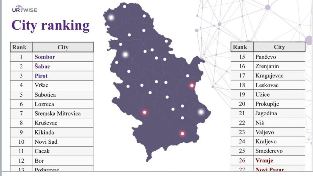 A tanulmány előzetes eredményei azt mutatják, hogy Zombor a legvonzóbb város. Bár Újvidék az összesített rangsorban a 10. helyet foglalja el, ha kizárólag a nagyvárosokat nézzük, az élmezőnyben van – emelték ki a kutatás szerzői az RTV-nek, hozzátéve, hogy a tanulmányt még a gazdasági szereplők körében végzett felméréssel is kiegészítik.