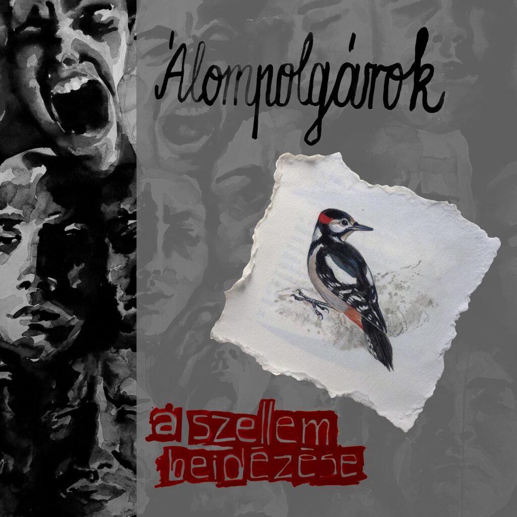 – A központi figura egy fakopács. A címadó dalban, a Szellem beidézésében csak egy pillanatra jelenik meg a fakopács, Sziveri azt mondja: »szívem mint a fakopács, kalapálva alakul, vegyétek ezt alapul« és ez az egyik kedvenc sorom egyébként. Különféle motívumon gondolkodtunk, amelyek egy kollázst alkotnának, nekem pedig folyamatosan ez a fakopács jutott eszembe és végül meg is szereztük őt a Búvár Zsebkönyvekből. A háttérben pedig arcok vannak, amelyhez az inspirációt Gentileschi: Judit lefejezi Holofernészt című alkotása adta. Azt kértem Bogitól, hogy az arcok legyenek olyanok, mint akiket folyamatosan megerőszakol az élet és az állam – szerintem ezt tökéletesen meg is valósította.