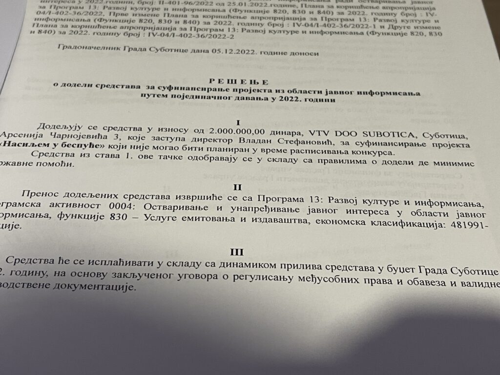 A rendelkezésre álló adatok azonban azt mutatják, hogy Szabadkán a támogatások elosztása fokozatosan koncentrálódott. A 2022–2025 közötti időszak különösen jól kirajzolja ezt a tendenciát: a pályázati források jelentős része visszatérően ugyanazon médiakörökhöz került, köztük a VTV médiacsoporthoz köthető vállalkozásokhoz, amely Vladan Stefanović tulajdona, valamint a Pannónia Alapítványhoz. Miközben 2023-ban még több mint 40 projekt részesült támogatásban, a források súlypontja ekkor is néhány, a helyi hatalomhoz közel álló szereplőnél összpontosult. A többiek szimbolikus összeget, aprópénzt kaptak.