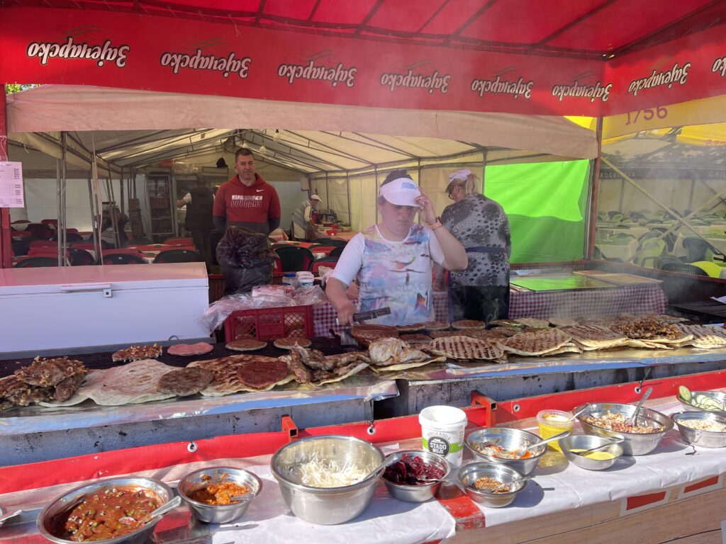 Körbejárva az ételeket kínáló standokat láthattuk, hogy a pljeskavica, a sült kolbász mindenhol 500 dinárba kerül, ehhez lepény és egy kis zöldség jár, a gurmán pljeskavicáért 600, míg egy szelet disznóhúsért már 800 dinárt kell fizetni. A sült malac és bárány ára is 1000 dinár körül mozog, attól függ mekkora darabbal elégszünk meg.