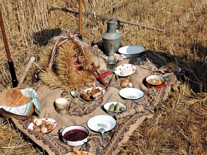 A 24 aratócsapat a helyszínen a parcellák végén kirakta a magával hozott, otthon előkészített aratóreggelit, így mindenki, aki arra járt, szó szerinti ízelítőt kapott abból, hogy mit fogyasztottak az emberek régen, amikor a tűző nappal, forrósággal dacolva kézzel takarították be az akkor még valóban nagyra becsült mindennapi kenyérhez valót.