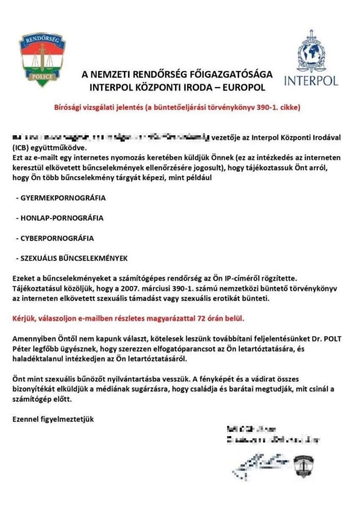 Ha Ön is kapott a rendőrség, vagy az Interpol nevében gyanús leveleket, akkor hagyja figyelmen kívül, és erre figyelmeztesse a hozzátartozóit is! Egyértelműen átverésről van szó!