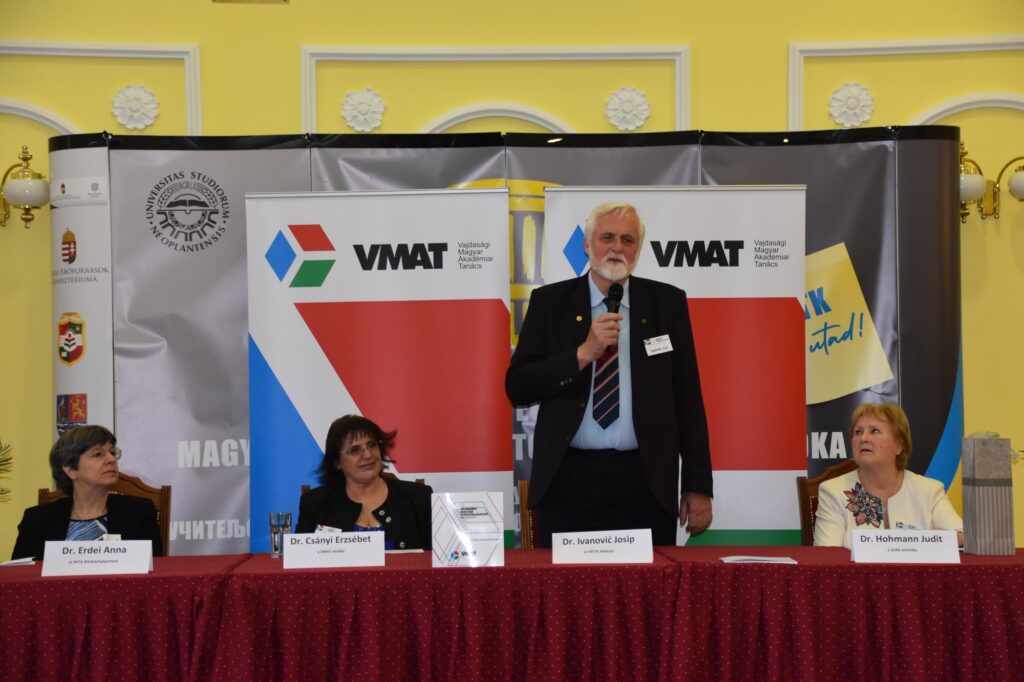 A konferenciát a VMAT nevében dr. Csányi Erzsébet, az MTA nevében dr. Erdei Anna akadémikus, főtitkárhelyettes, a Szegedi Akadémiai Bizottság nevében dr. Hohmann Judit akadémikus, alelnök, az MTTK nevében dr. Ivánovity Josip mb. dékán köszöntötte.