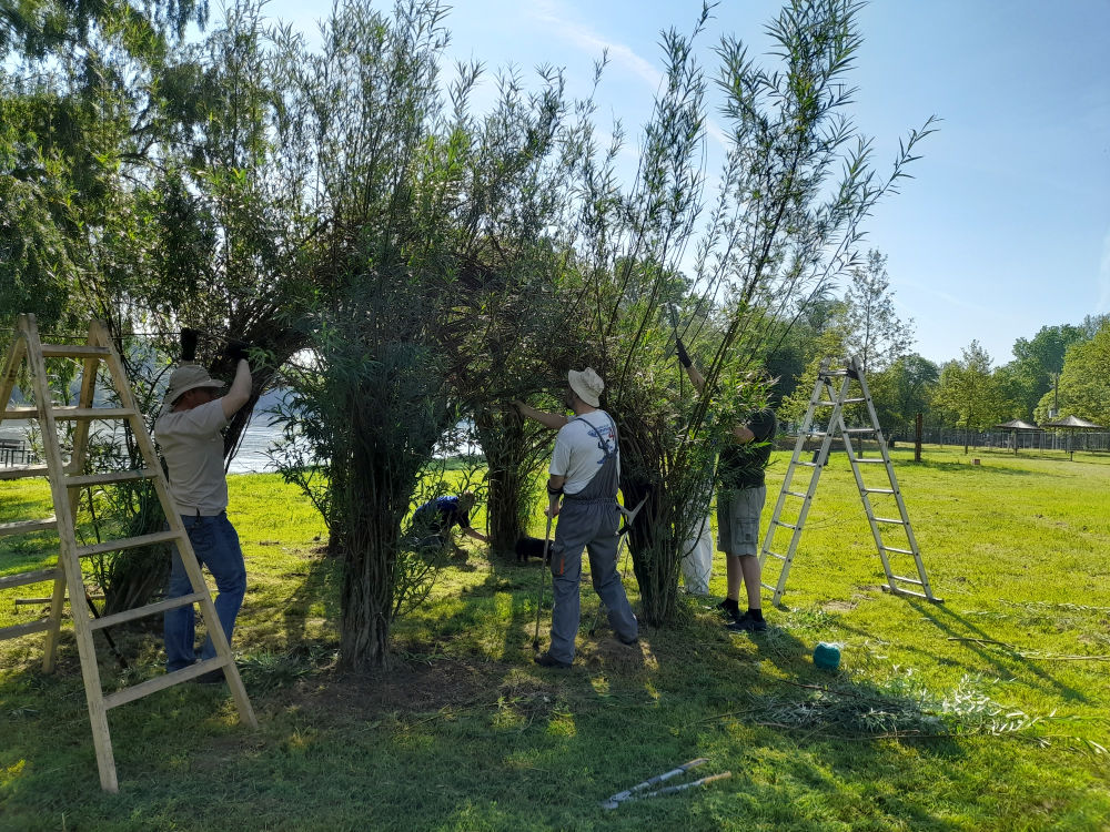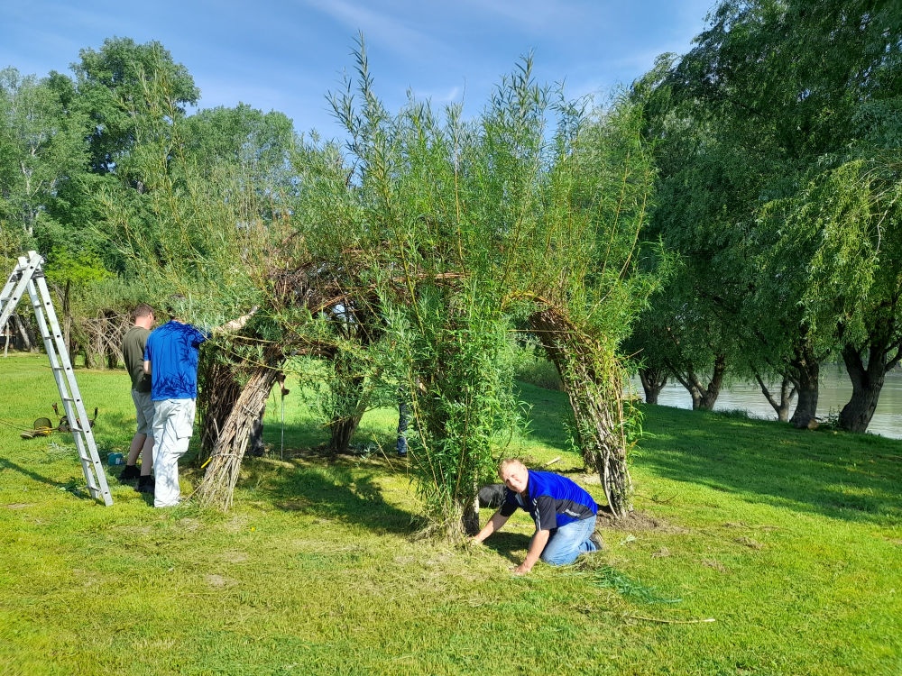– A magyarkanizsai strandon álló, két élő-fűzépítmény 2018-ban létesült Takács Edvárd, tájépítész vezetésével, a Wemsical Serbia által szervezett kalákában. A fűzépítmények olyan organikus építmények, amelyeket élő anyagból hoznak létre, és amelyek hosszú éveken át tovább élnek. Csodálatos példája ez annak, ahogyan az ember élő anyagból képes létrehozni valami egyedi építményt. Mivel élő építményről van szó gondozni kell. A gondozás legfontosabb feladata a tavaszi igazítás, visszavágás, szükség szerinti pótlás, locsolás. Ezt végeztük mi el május első hétvégéén kalákában, melyben tizenhárom önkéntes vett részt. Nekik köszönhető, hogy a starandon álló két fűzkupola megújult és most rendezett formáját muatatja. És bár az idei fűzmegújító kalákát a LandArt szervezte, nem mehetek el amellett, hogy köszönet illeti Hajdú Lacát és Vígi Lászlót, akik nem csak részesei voltak a kalákának, de a szervezésbe is segítettek. Lelkesítő volt, mindenki mosolygósan távázott, persze ez nem csoda, hiszen önkéntes munkára csupa jó ember jön össze.