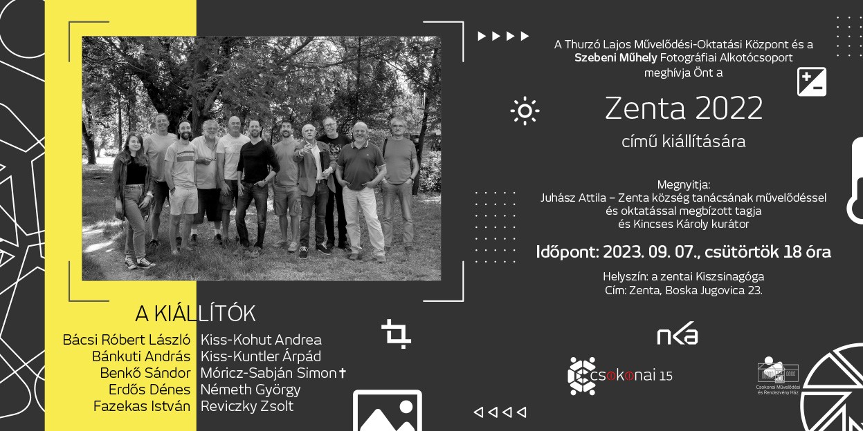 A Zenta 2022 című kiállításon szereplő alkotók: Bácsi Róbert, Bánkuti András, Benkő Sándor, Erdős Dénes, Fazekas István, Kiss-Kohut Andrea, Kiss-Kuntler Árpád, Móricz Sabján Simon +, Németh György, Reviczky Zsolt.
