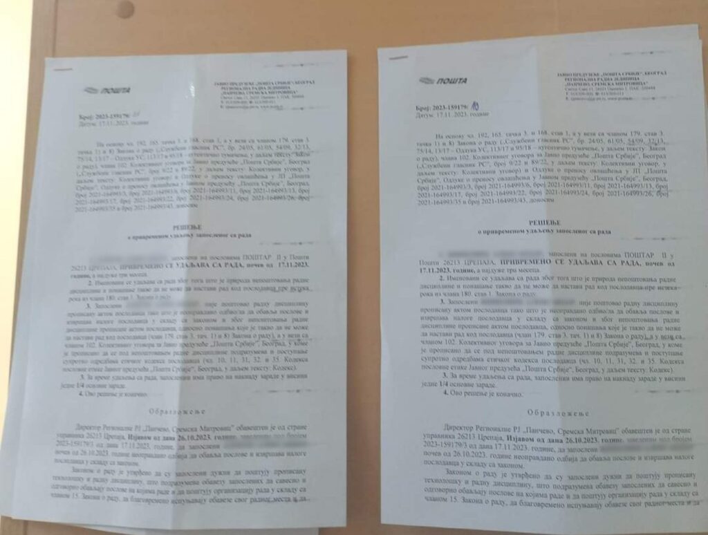 Stefan Mitrović postai alkalmazott az N1 Televíziónak nyilatkozva úgy fogalmazott, hogy a Szerb Posta vezetősége elkezdte a megtorlást és fegyelmi intézkedésként „ideiglenesen eltávolítja a dolgozókat a munkahelyükről”. Hozzátette, kollégái és kolléganői nem veszik át az erre vonatkozó végzéseket és azokat nem írják alá.